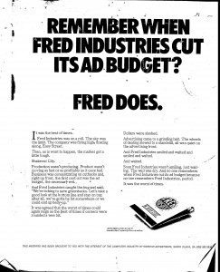 Remember When Fred Industries Cut Its Ad Budget? Fred Does.